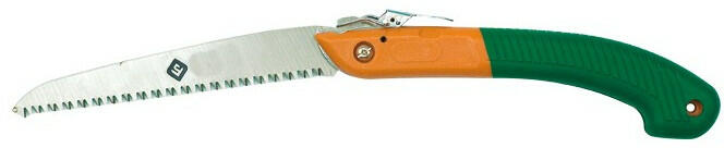 Összecsukható kerti fűrész aláásáshoz. Egy rugalmas, ívelt pengéjű fűrész, melynek speciális profilú fogai az ágak vágásához készültek, és mely egy műanyag hosszú nyélben van elrejtve. A nyélben lévő lyuk megkönnyíti a tárolást. Elengedhetetlen eszköz minden kertész munkájában. A fűrésznek pengeszorítója van. Használati figyelmeztetések: A kéziszerszámok használata veszélyes lehet! Mindig használjon személyes védőfelszerelést munka közben. Csak megfelelő, sértetlen eszközöket használjon. Válassza ki a megfelelő típusú és méretű eszközt az adott feladathoz. Ne terhelje túl az eszközöket. Tartsa távol a szerszámokat a gyermekektől. Gondosan használja az eszközöket.