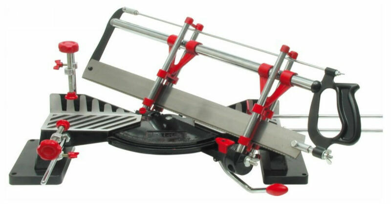 Vágási magasság állítható az ütközőgyűrű magasságának beállításával. Rendeltetésszerű használat/alkalmazás Különösen alkalmas keretezéshez, szegélylécek és burkolatok vágásához, mindenféle befejező és díszítő munkához. A távtartók lehetővé teszik a gyors beállítást és a reprodukálható munkadarabok vágását Használat: Először állítsa be a kívánt vágási szöget. Ehhez a kar segítségével mozgassa a fűrészt a megfelelő pozícióba. A fűrész lehetővé teszi a vágási szög függőlegesen történő beállítását is. Ehhez lazítsa meg a szárnyas anyákat a forgókar mindkét végén, állítsa be a kívánt vágási szöget függőleges síkban, majd húzza meg a szárnyas anyákat erősen és biztonságosan, rögzítve a beállított vágási szöget. Emelje fel a fűrészt, és helyezze a munkadarabot a munkaasztalra. Rögzítse a munkadarabot az asztalhoz egy bilincs segítségével. A szorító lehetővé teszi a vágási hossz beállítását, különösen több azonos hosszúságú munkadarab vágása esetén. Tartsa a fűrészt a fogantyúnál fogva, és kezdje el a vágást. Vágáskor csak annyi nyomást alkalmazzon, amennyi a biztonságos és hatékony munkavégzéshez szükséges. Penge hossza: 550 mm Penge szélessége: 45 mm Vastagság: 1 mm Függőleges vágási szög: ±45 ˚ Vízszintes vágási szög: 45, 55, 60, 72, 90 ˚ Max. vágási szélesség: 120 mm Max. vágási magasság: 110 mm Készlet tartalma: Fűrészasztal, műanyag alap, fűrészlap, vezetősínek, fűrészlap